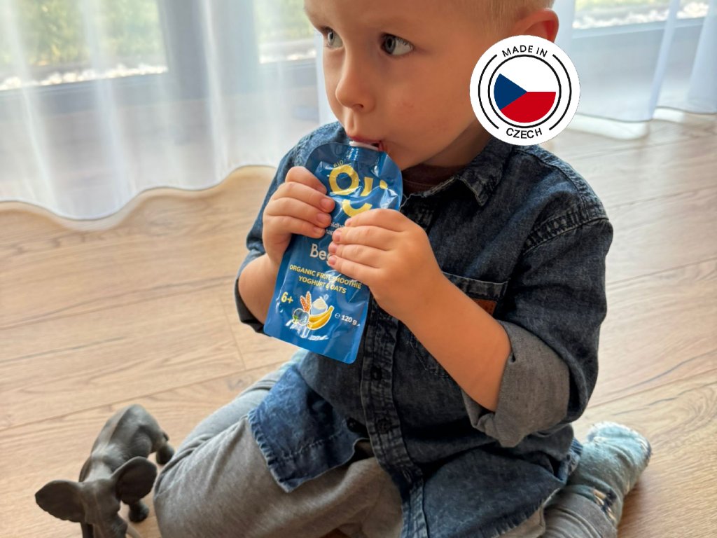Lahodný jogurt, banán a borůvky, to je kombinace, na které si pochutná nejeden dětský jazýček. Společně s ovsem pak zasytí každé malé bříško. V této BIO kapsičce nic dalšího nehledejte. Snad jen kapku citronové šťávy s vitamínem C, který přispívá k normální funkci imunitního systému.