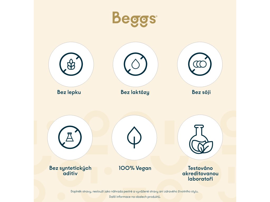 ✔ Vhodné kombinovat s doplňkem stravy Beggs Vitamin D3 1000 IU + K2 20 μg