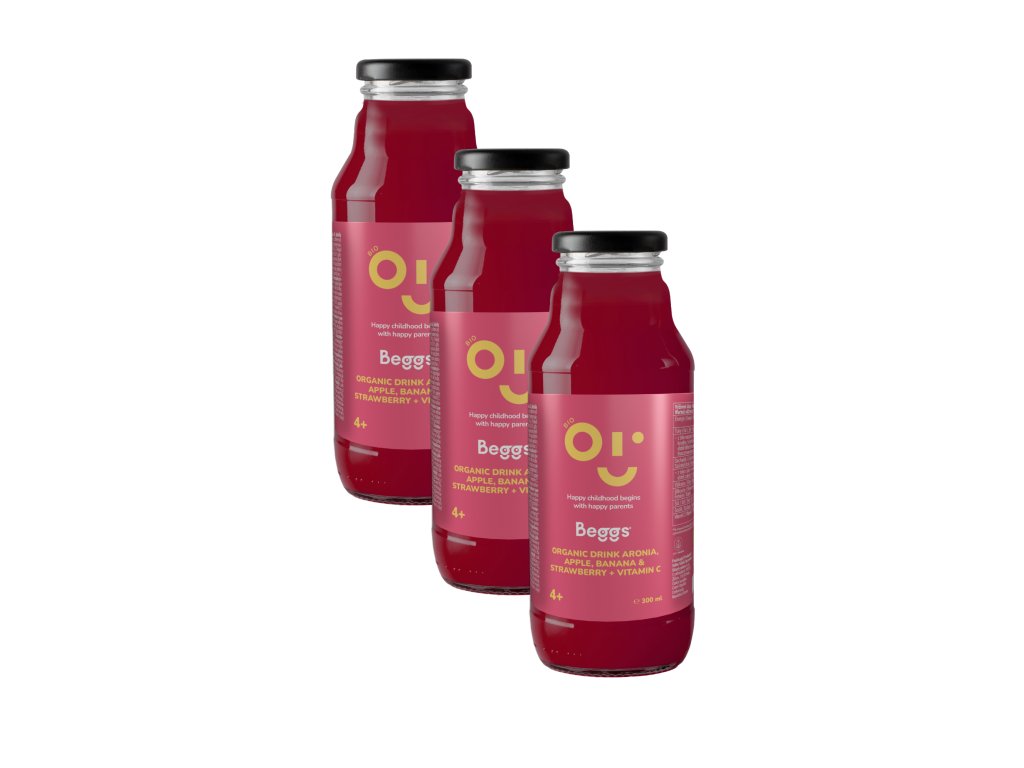 3x Beggs BIO Nápoj aronie, jablko, banán & jahoda (300 ml)