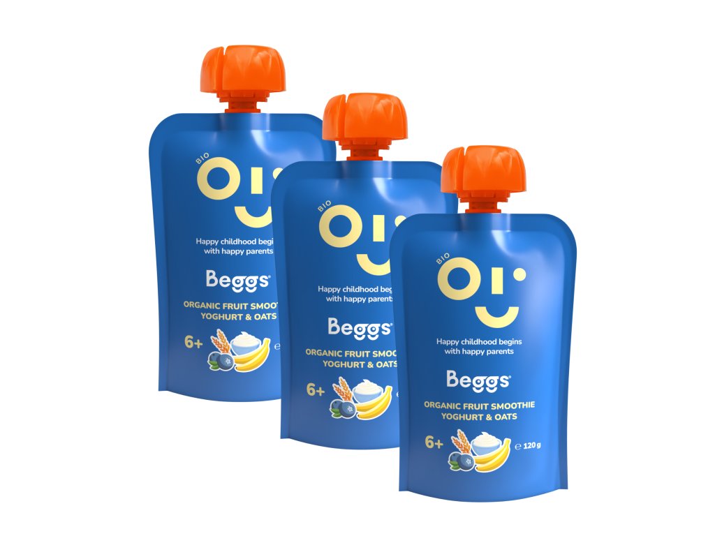 3x Beggs BIO Smoothie s ovocem, jogurtem a ovesnými vločkami (120 g)