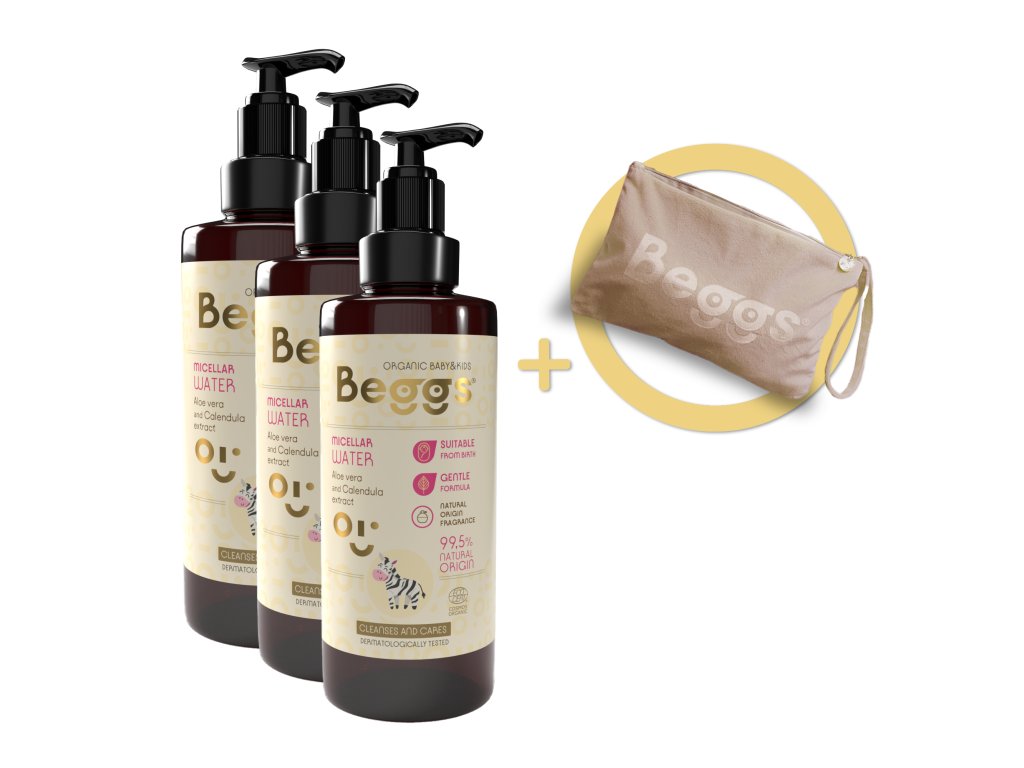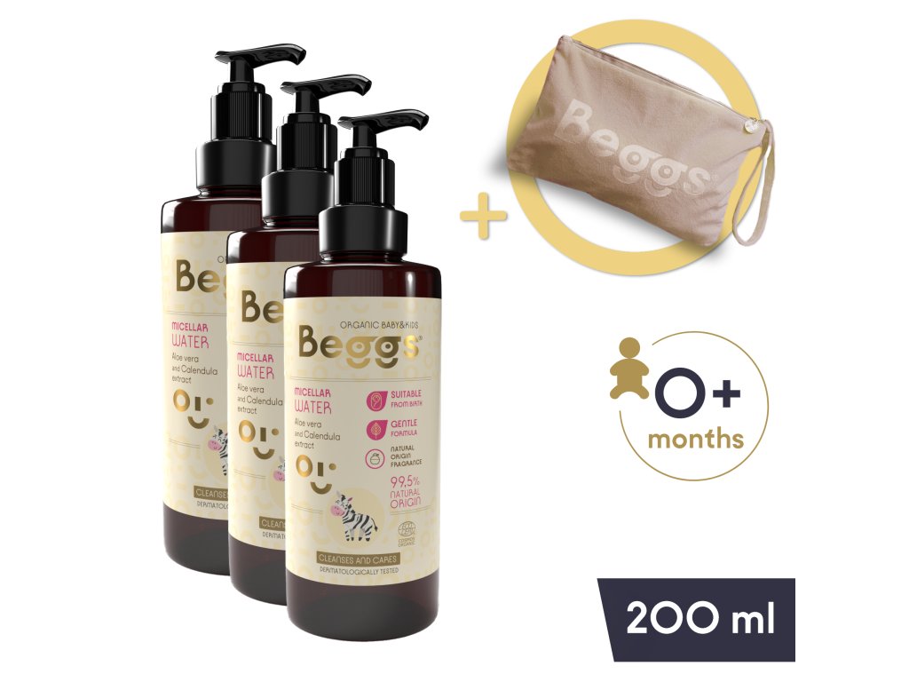 3x Beggs Dětská micelární voda (200 ml) + taštička ZDARMA