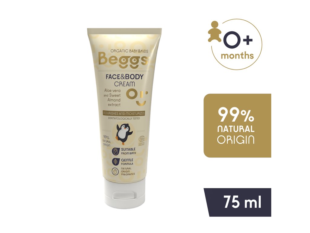 3x Beggs Dětský hydratační krém na pleť a tělo (75 ml) + taštička ZDARMA