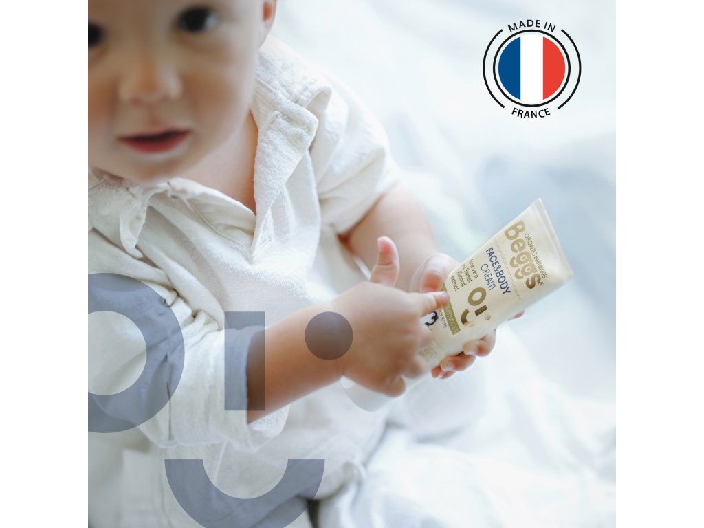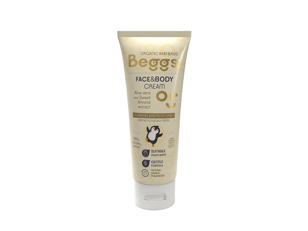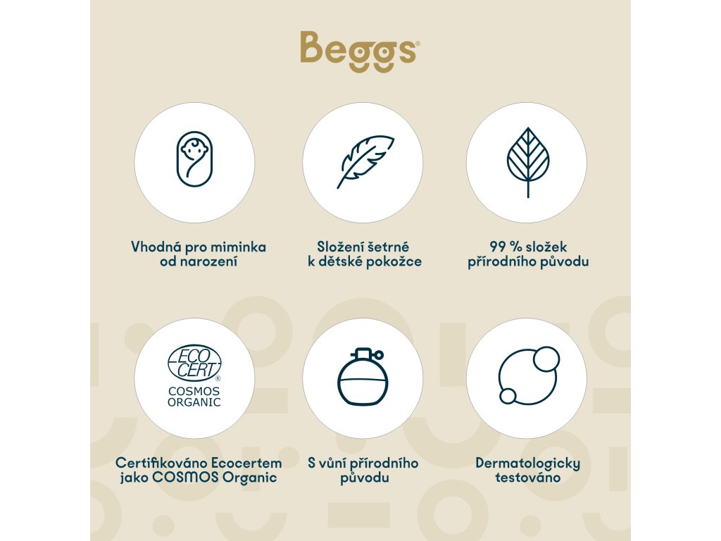 Beggs Dětský hydratační krém na obličej a tělíčko je vhodný pro Vaše děťátko již od narození. Přírodní složení s bambuckým máslem je pro miminka nejvhodnější péče. Máslo je bohaté na vitamin E, který má antioxidační vlastnosti, navíc pokožku vyživuje a společně s extraktem ze sladkých mandlí z Provence ji také zjemňuje. Krém také obsahuje aloe vera šťávu, která podporuje hydrataci pokožky, vyživuje ji a chrání. Všechny tyto složky pochází z kontrolovaného ekologického zemědělství (BIO) a 99 % složek v balení je přírodního původu.