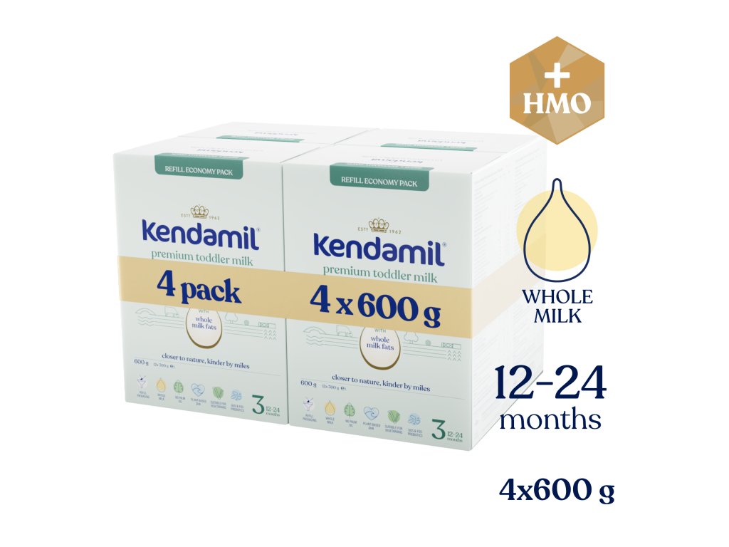 Důležité upozornění: Kojení je nejlepší způsob výživy vašeho dítěte. Kendamil Premium 3 HMO+ je určen pro výživu malých dětí od ukončeného 12. měsíce a měl by tvořit pouze součást jejich smíšené a vyvážené stravy. Při krmení z lahvičky zamezte nepotřebnému prodlužování kontaktu savičky se zoubky, zvyšujete tím riziko zubního kazu. Pečujte o hygienu ústní dutiny dítěte, především před spaním. Dodržujte pokyny pro přípravu, krmení a skladování, jinak ohrozíte zdraví dítěte. Není určeno pro děti do 12 měsíců.
