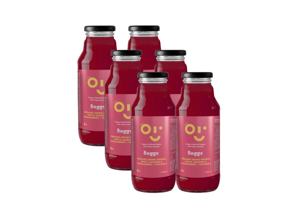 6x Beggs BIO Nápoj aronie, jablko, banán & jahoda (300 ml)