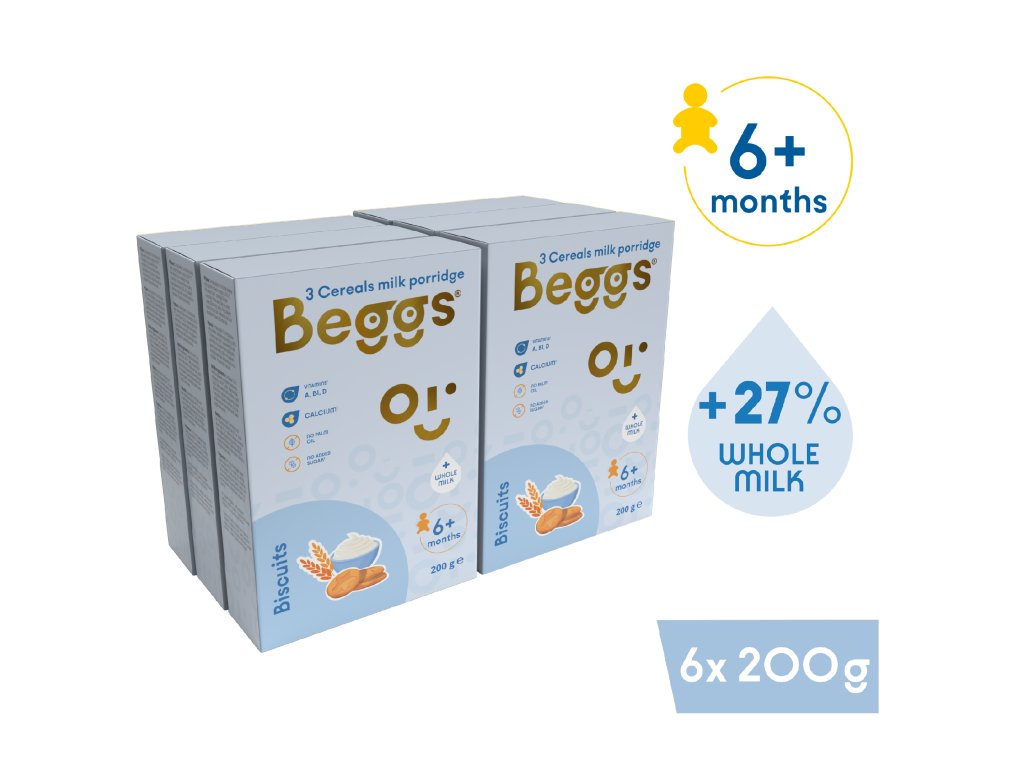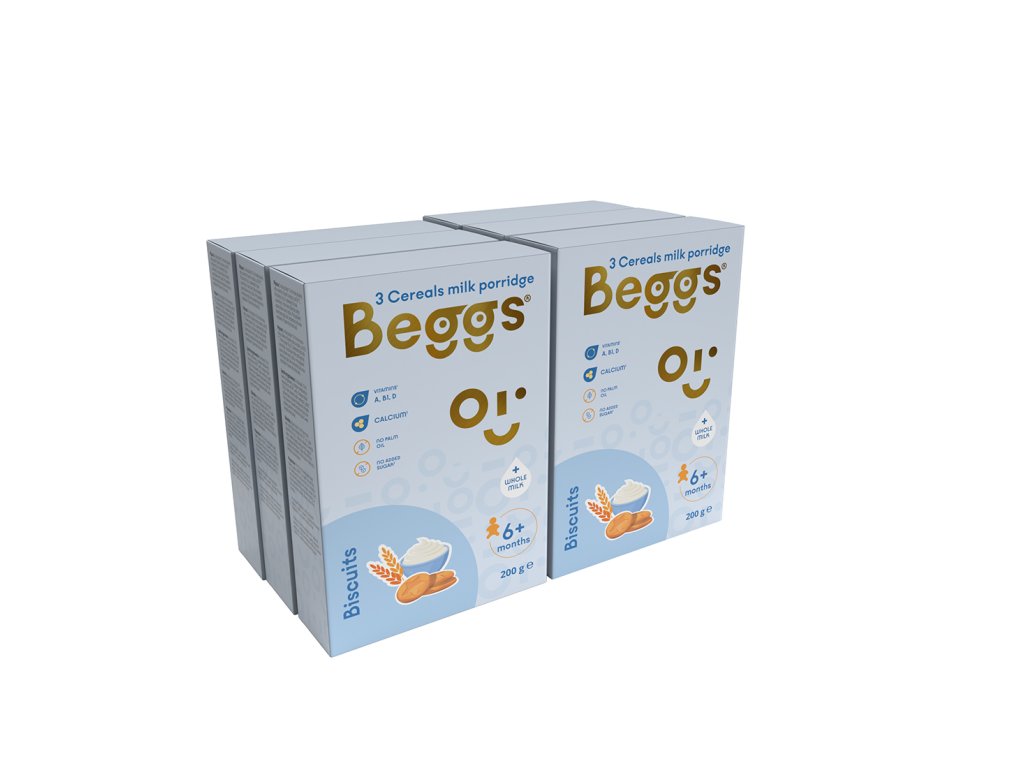 6x Beggs Mléčná 3zrnná kaše se sušenkami (200 g)