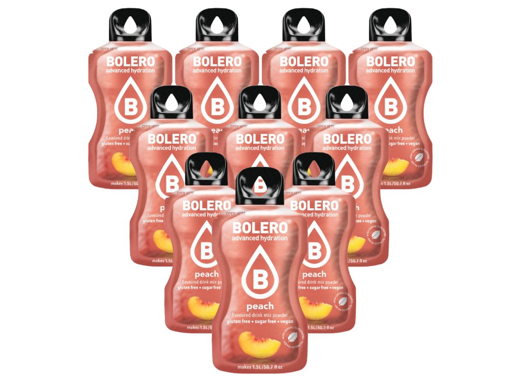Nealkoholický nápoj v prášku s příchutí broskve, se sladidly. BEZ UMĚLÝCH BARVIV A AROMAT. Bolero je originální a široce použitelná směs. Dá se mixovat s vodou, mlékem, což je oblíbené zejména u dětí a dokonce i s alkoholem, což mají v oblibě dospělí. Návod na přípravu: obsah sáčku rozmíchejte v 1,5 l vody.