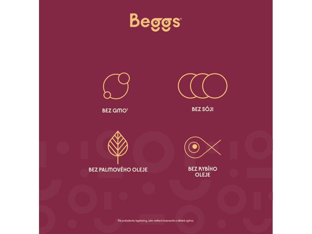 Důležité upozornění: Kojení je nejlepší způsob výživy kojenců. Beggs 1 je určené pro výživu kojenců od narození, nemohou-li být kojeni, a mělo by být užíváno pouze na radu nezávislých osob kvalifikovaných v lékařství, výživě nebo farmacii, nebo jiných odborníků odpovědných za péči o matku a dítě. Pečujte o hygienu ústní dutiny v období růstu prvních zoubků, především před spaním. Dodržujte pokyny pro přípravu a skladování, jinak ohrozíte zdraví kojence.