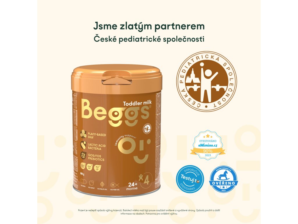 Důležité upozornění: Kojení je nejlepší způsob výživy dětí. Beggs 4 je určeno pro výživu malých dětí od ukončeného 24. měsíce a mělo by tvořit pouze součást smíšené a vyvážené stravy malého dítěte. Při krmení z lahvičky zamezte nepotřebnému prodlužování kontaktu savičky se zoubky, zvyšujete tím riziko zubního kazu. Pečujte o hygienu ústní dutiny dítěte, především před spaním. Dodržujte pokyny pro přípravu a skladování, jinak ohrozíte zdraví dítěte. Není určeno pro děti do 12 měsíců.