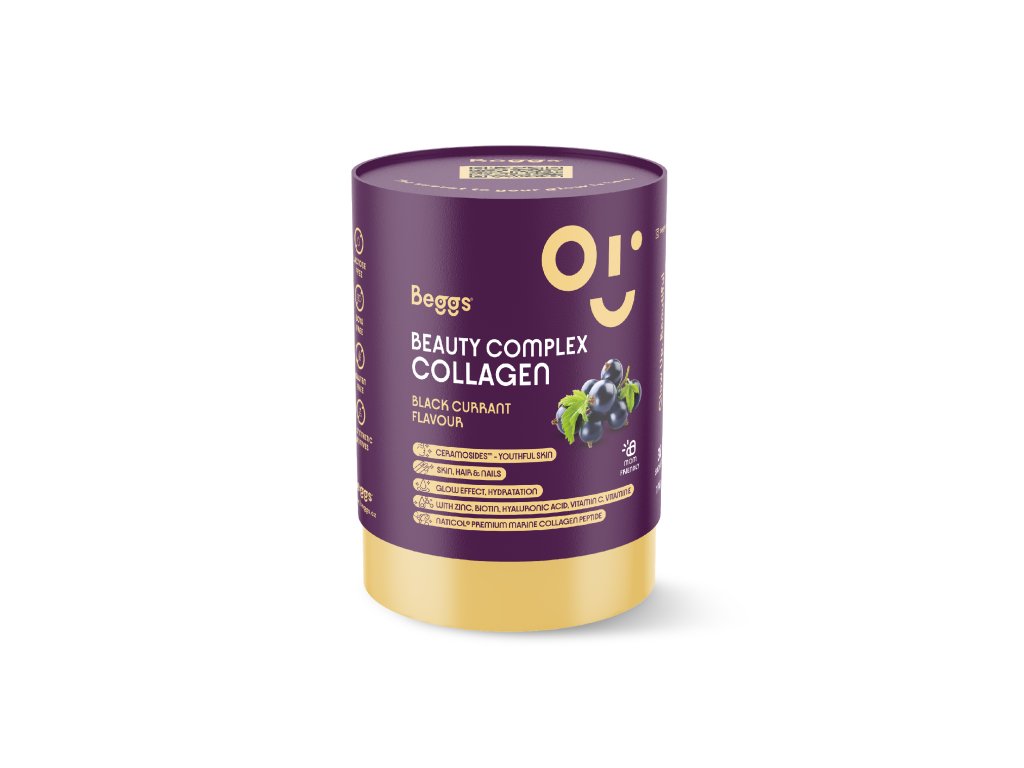 Beggs Beauty Complex Collagen je prémiový kolagenový doplněk stravy s jedinečným složením navržen pro ty, kteří chtějí krásnou pleť a lesklé vlasy díky podpoře zevnitř. Každá denní dávka obsahuje 5 000 mg hydrolyzovaného rybího kolagenu Naticol®, který se vyznačuje vysokou čistotou a výbornou vstřebatelností. Je obohacen o fytoceramidy Ceramosides™, kyselinu hyaluronovou, biotin a zinek – harmonickou kombinaci spojovanou s péčí o pleť, jejím svěžím, hydratovaným a zářivým vzhledem. Vitamin C navíc přispívá k normální tvorbě kolagenu pro správnou funkci pokožky, která si tak uchovává svou přirozenou pevnost a pružnost.
