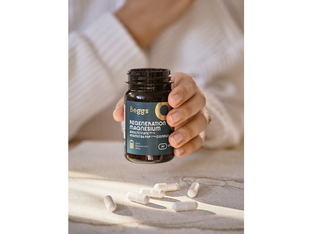 Beggs Magnesium bisglycinate + vitamin B6 P5P Complex, doplněk stravy, 30 kapslí