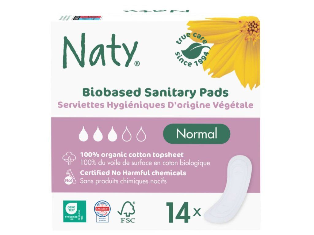 Menstruační vložky Naty jsou vyrobeny z kompostovatelných rostlinných materiálů. Celkový obal je z recyklovatelného papíru a obaly jednotlivých vložek jsou z certifikované 100% kompostovatelné fólie vyrobené z obnovitelných rostlinných materiálů. Jejich používáním tak může vaše svědomí zůstat naprosto čisté.
