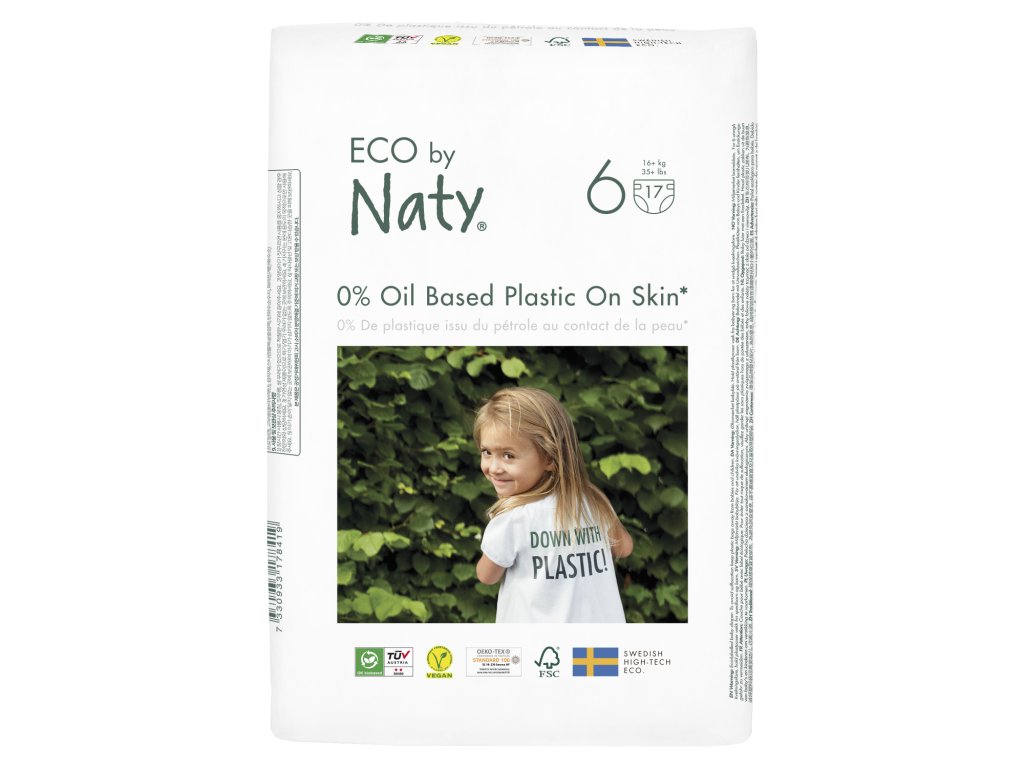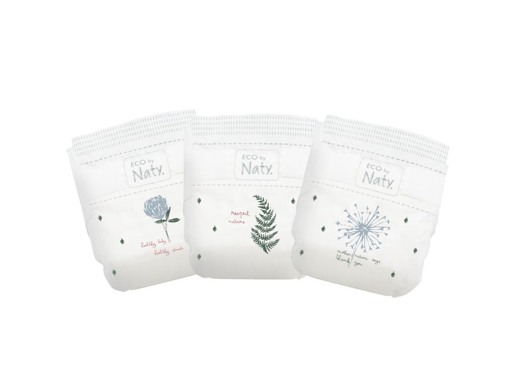 Šetrné, jemné a ekologické, to jsou oblíbené plenky švédské značky Eco by Naty pro děti s hmotností větší než 16 kg. Díky vylepšenému jádru teď ještě více sají. Jsou šetrné jak pro planetu, tak dětský zadeček. Vnitřní vrstva dotýkající se zadečku je z certifikovaného 100% přírodního biologicky odbouratelného materiálu.