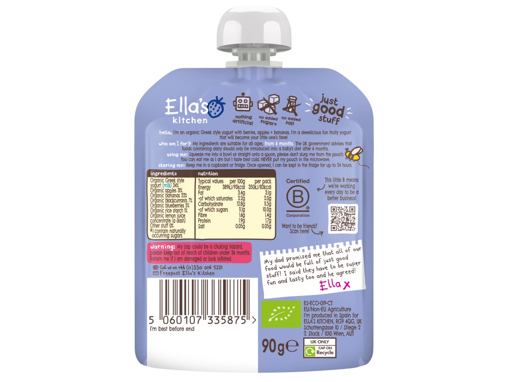 Výrobce: Ella’s Kitchen Ella’s Barn, 22 Greys Green Farm Rotherfield Greys Henley-on-Thames RG9 4QG, Velká Británie. Oficiální distributor: Health Academy, s. r. o., Zbraslavská 22/49, 159 00, Praha, Česká republika.