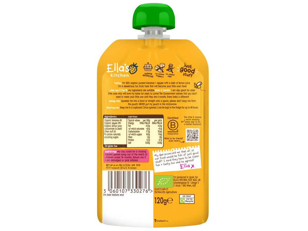 Výrobce: Ella’s Kitchen Ella’s Barn, 22 Greys Green Farm Rotherfield Greys Henley-on-Thames RG9 4QG, Velká Británie. Oficiální distributor: Health Academy, s. r. o., Zbraslavská 22/49, 159 00, Praha, Česká republika.