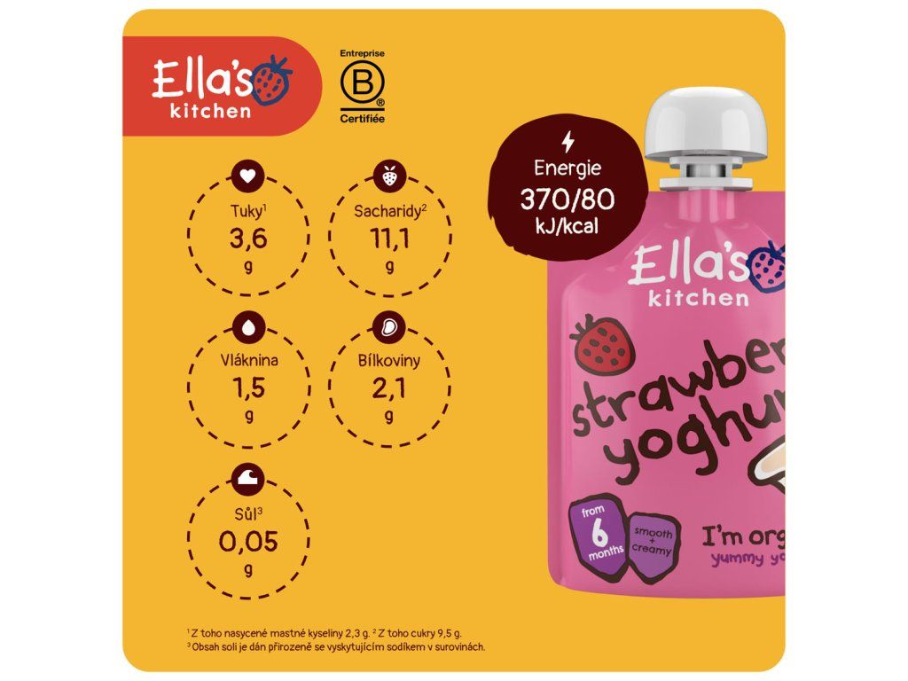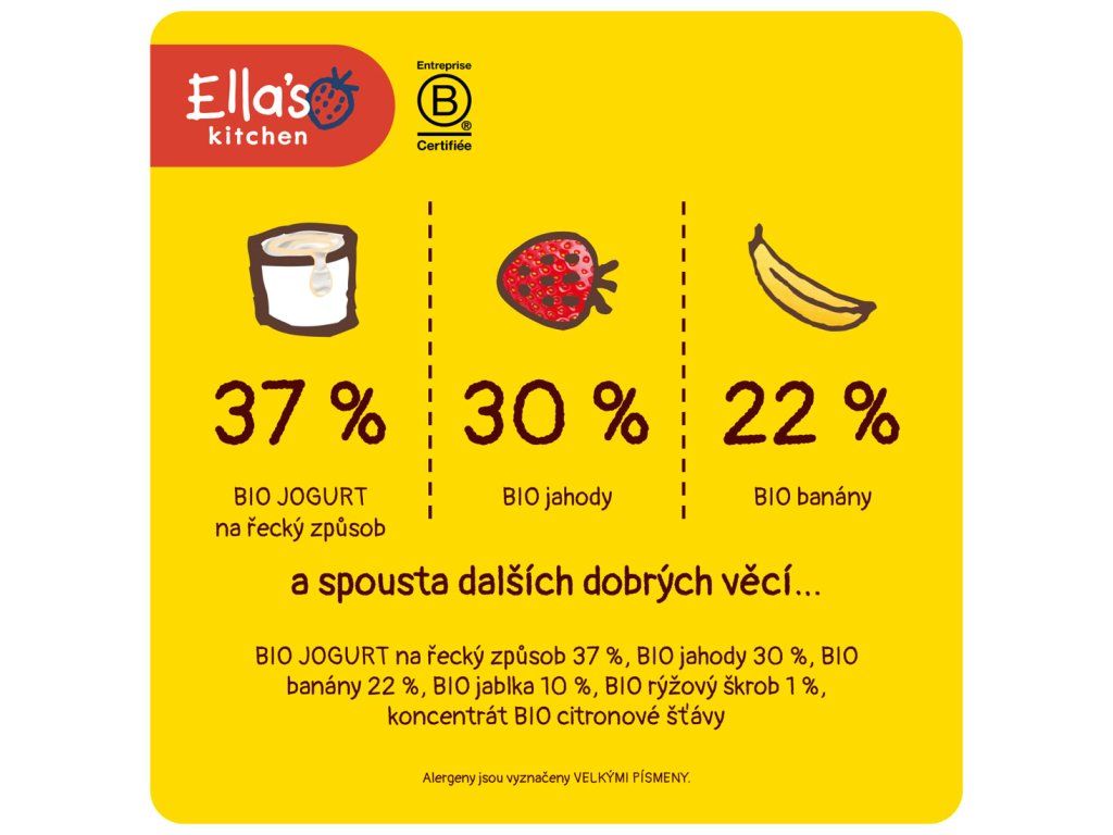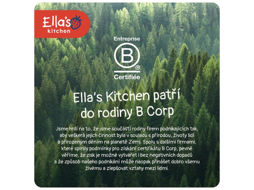 Výrobce: Ella’s Kitchen Ella’s Barn, 22 Greys Green Farm Rotherfield Greys Henley-on-Thames RG9 4QG, Velká Británie. Oficiální distributor: Health Academy, s. r. o., Zbraslavská 22/49, 159 00, Praha, Česká republika.