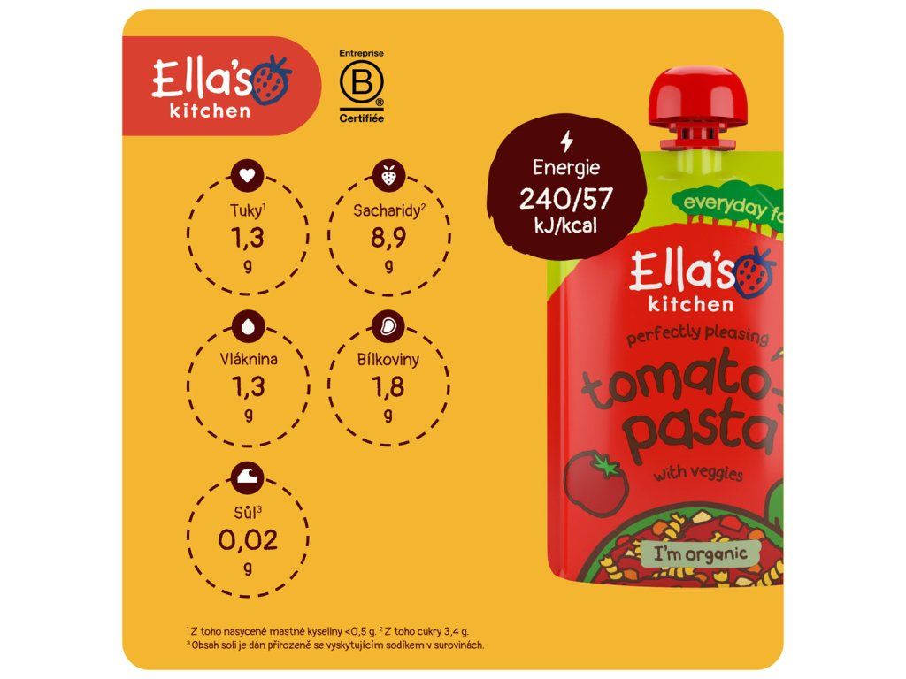 Výrobce: Ella’s Kitchen Ella’s Barn, 22 Greys Green Farm Rotherfield Greys Henley-on-Thames RG9 4QG, Velká Británie. Oficiální distributor: Health Academy, s. r. o., Zbraslavská 22/49, 159 00, Praha, Česká republika.