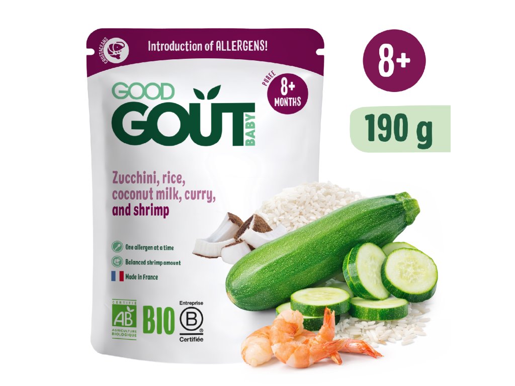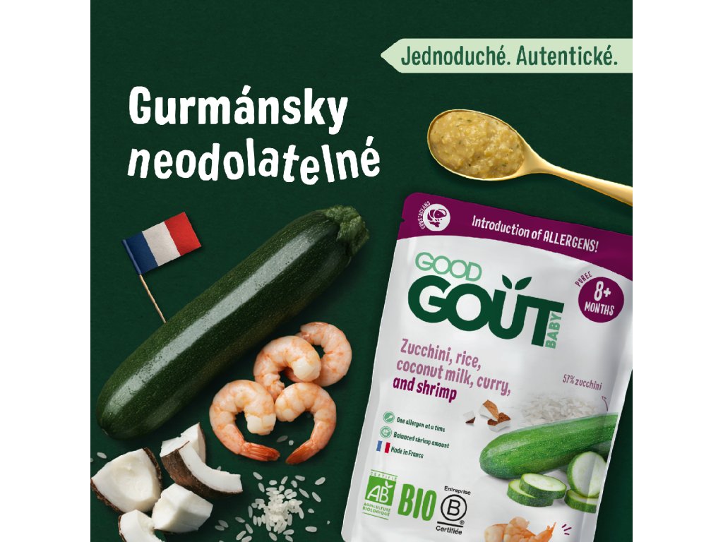 Good Gout BIO Krevety s rýží, cuketou a kokosovým mlékem (190 g), exp. 05.06.2026