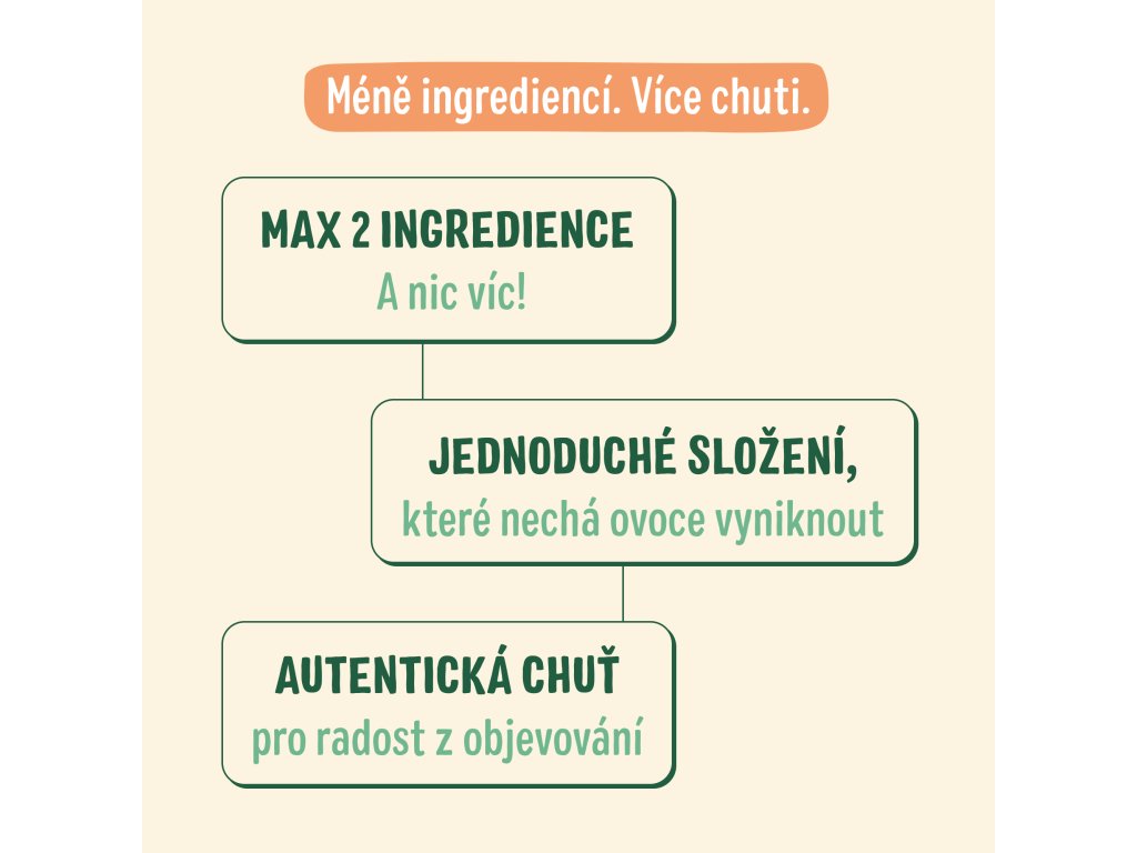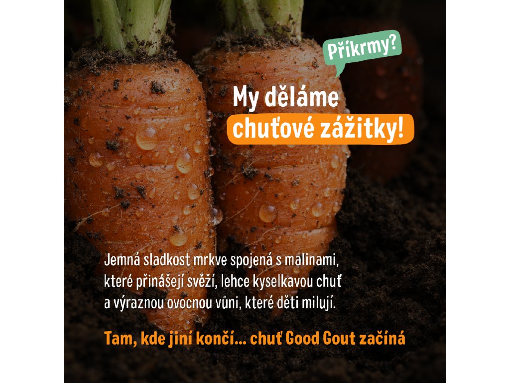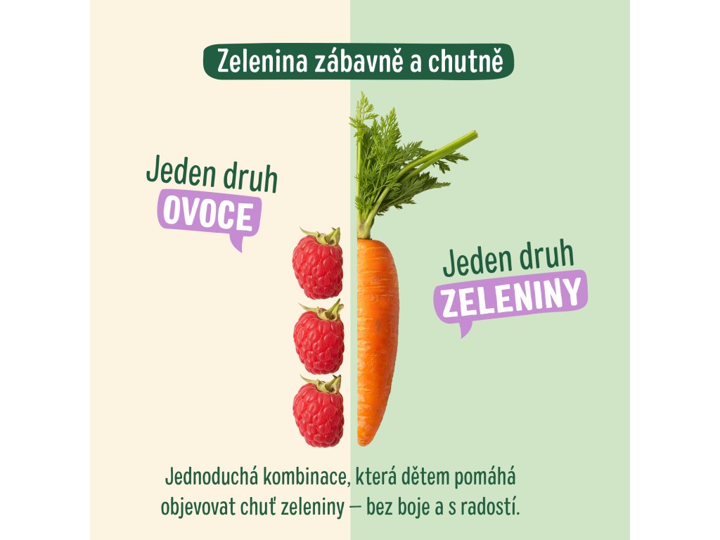 Mrkev přináší jemnou, přirozenou sladkost, která je dokonale vyvážena svěží, kyselou chutí maliny. Společně tvoří harmonickou rovnováhu mezi sladkým a kyselým. Vaše děti se tak naučí rozlišovat různé chutě a rozmanité kombinace jim pomohou rozšířit jejich chuťové preference.