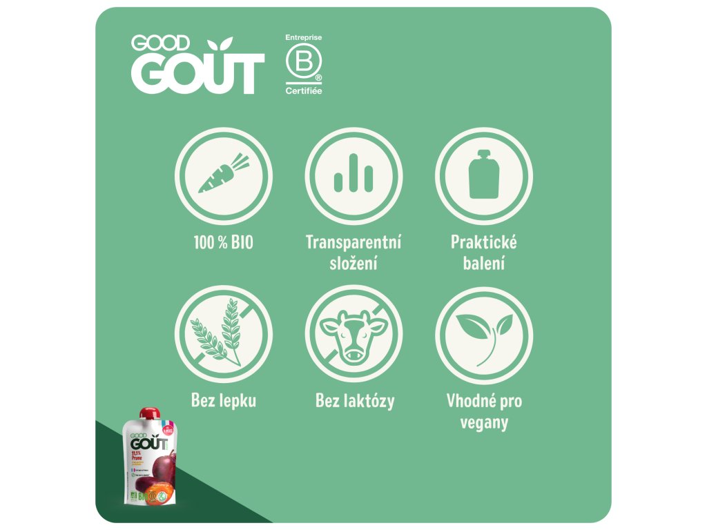 B-Corp je celosvětová komunita stejně smýšlejících společností hledajících rovnováhu mezi výrobou a ziskem. Good Gout splňuje přísné sociálně-environmentální normy a bere v úvahu dopady svého jednání na všechny zúčastněné strany: zaměstnance, obchodní partnery, zákazníky, společnost a životní prostředí.