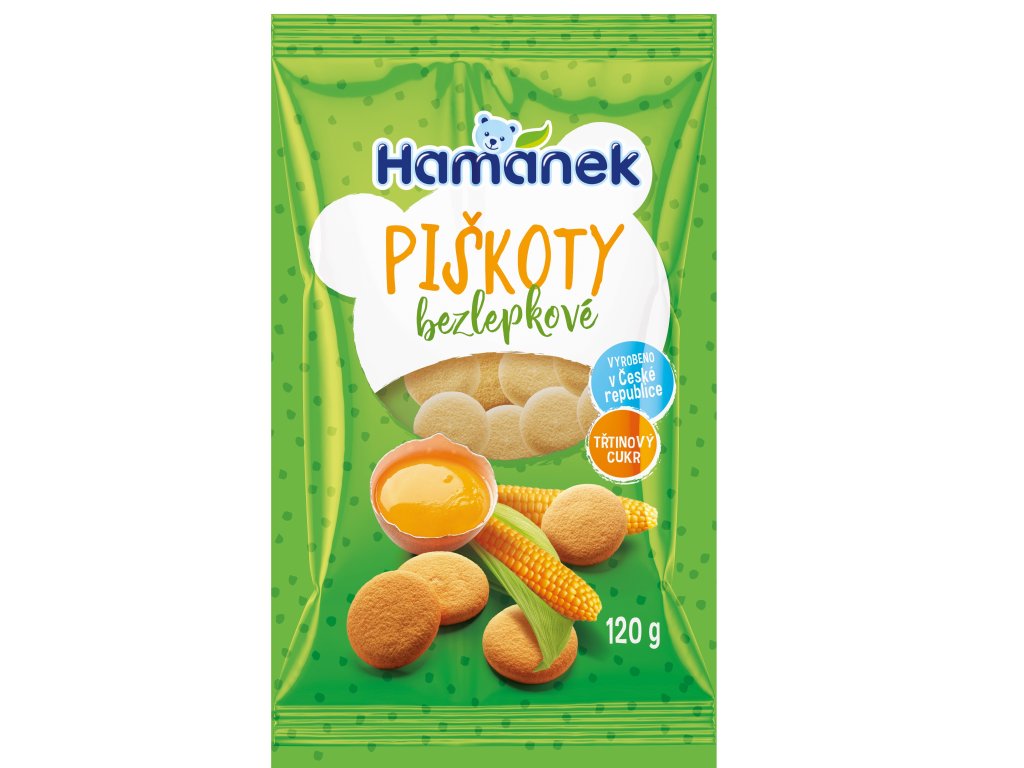 Hamánek Bezlepkové piškoty – jemné, křehké a bez lepku. Jsou vyrobeny z kvalitních surovin bez obsahu lepku, takže jsou vhodné i pro osoby s bezlepkovou dietou. Hlavní přednosti: