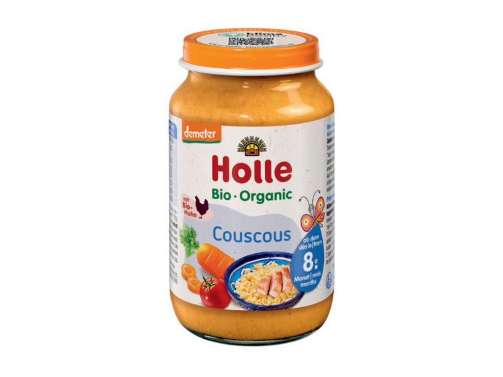 Maso-zeleninový příkrm pro zvláštní výživu dětí od ukončeného 8. měsíce. Dětská zeleninová přesnídávka s kuskusem je vyrobena z ingrediencí pocházejících z BIO zemědělství. Bez přidaného cukru1 a bez přídavku soli.