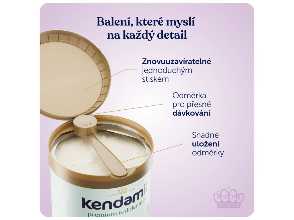 Důležité upozornění: Kojení je nejlepší způsob výživy Vašeho dítěte. KENDAMIL PREMIUM 3 HMO+ je určen pro výživu malých dětí od ukončeného 12. měsíce a měl by tvořit pouze součást smíšené a vyvážené stravy malého dítěte. Při krmení z lahvičky, zamezte nepotřebnému prodlužování kontaktu savičky se zoubky, zvyšujete tím riziko zubního kazu. Pečujte o hygienu ústní dutiny dítěte, především před spaním. Dodržujte pokyny pro přípravu, krmení a skladování, jinak ohrozíte zdraví dítěte. Není určeno pro děti do 12 měsíců.