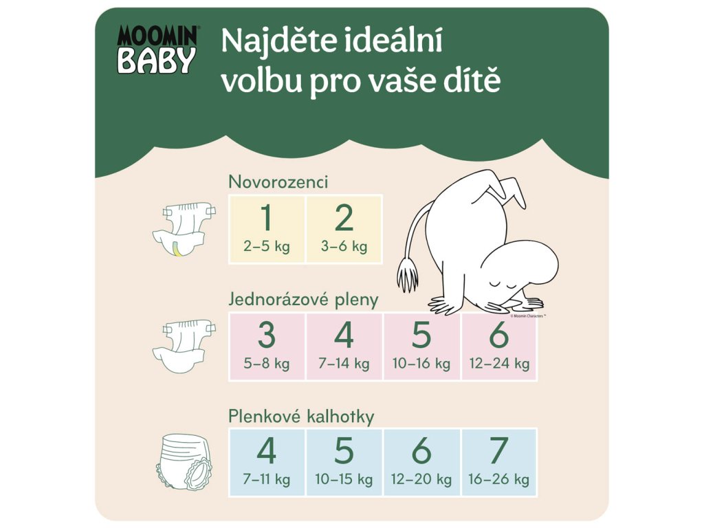 Velikosti plen Moomin Baby jsou založeny na hmotnosti dítěte. Na obalu i samotné pleně najdete jasné označení velikosti.
