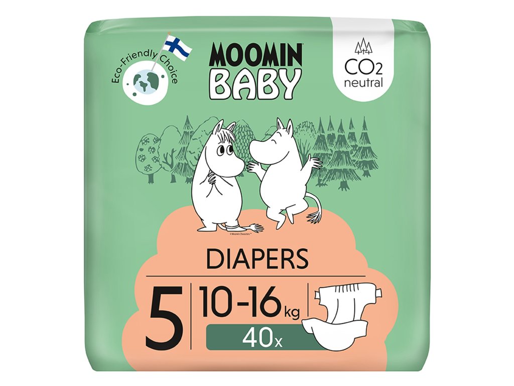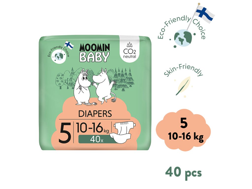Moomin Baby 5 Maxi 10–16 kg (40 ks), eko pleny