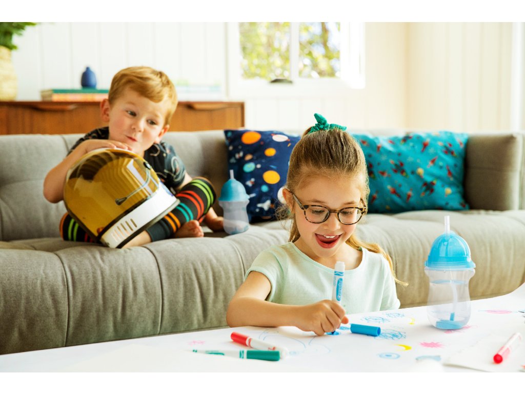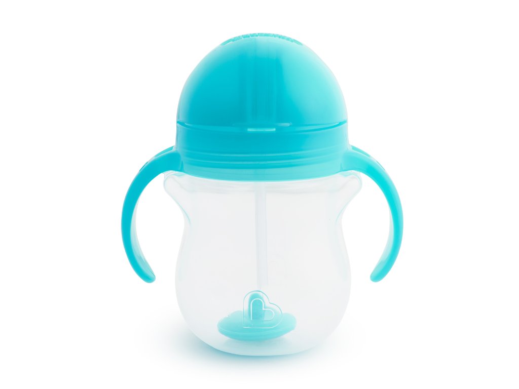 Tento hrneček s brčkem má úchyty, které mohou snadno držet i malé děti. Zatížené silikonové brčko umožňuje pití z jakéhokoli úhlu. Brčko lze sklopit a víčko zacvaknout, čímž se hrneček stane odolný proti vytečení a ideálním pomocníkem na cesty. Je vhodný na vodu, mléko nebo džus a lze ho mýt v horním koši v myčce na nádobí.