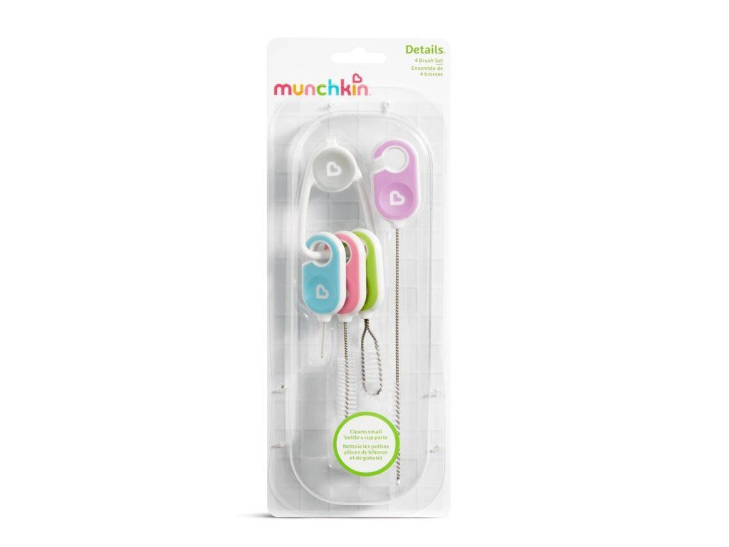 Záludné rohy, pítka, tenká brčka... hrnečky jsou nezbytné pro to, aby se vaše batole naučilo pít jako velké dítě, ale někdy se vám je nepodaří vyčistit tak, jak byste chtěli. Praktická sada kartáčků Munchkin, vyřeší všechny vaše problémy s čištěním! Je vybavena čtyřmi kartáči jedinečné velikosti, které vyčistí a vydrhnou každou skulinku bez ohledu na to, jak je malá. Jako bonus je na úložném kroužku umístěn trsátko, které usnadňuje odstraňování těsnicích kroužků. Už žádné zbytky nebo přemýšlení o tom, jestli je váš šálek skutečně čistý.Doplňkové parametry