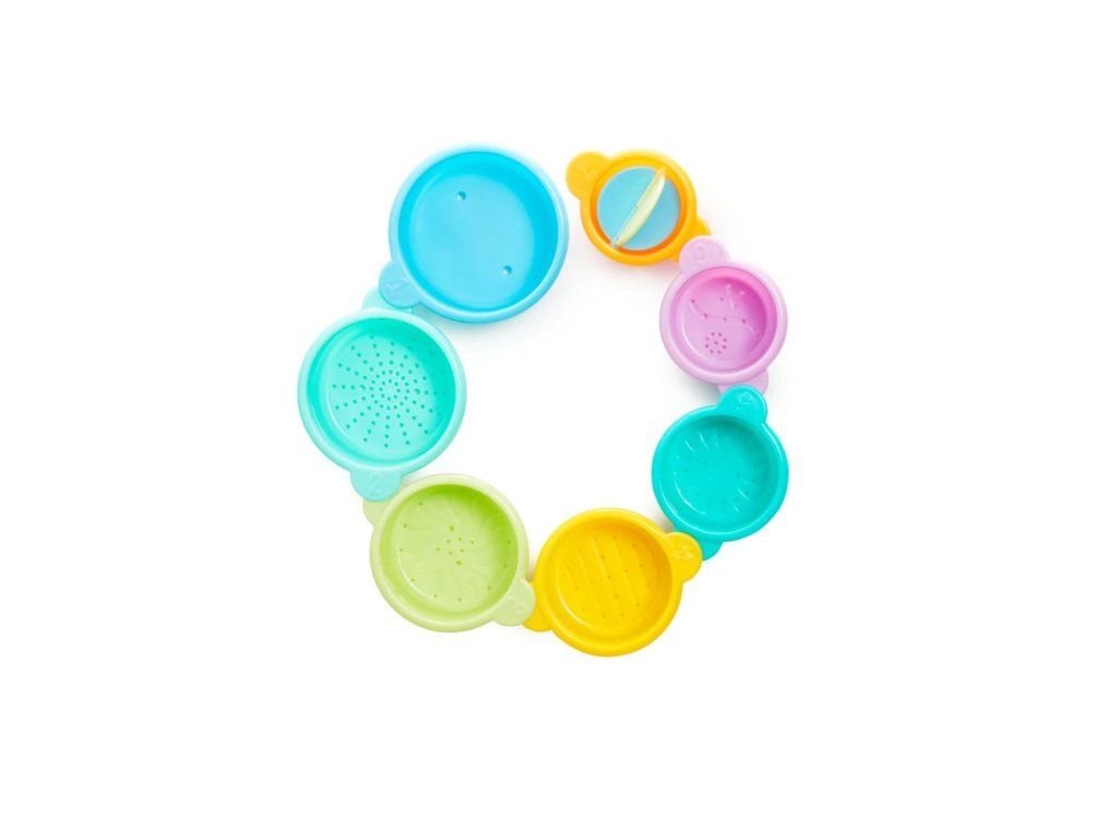 Munchkin Connect-A-Cup pohárky do vany přemění každé koupání na zábavné a interaktivní dobrodružství. Sada obsahuje 7 barevných pohárků, které lze stohovat, spojovat a vytvářet tak jedinečné vzory při nalévání vody. Jeden z pohárků je otočný pro ještě více hravých možností. Hra podporuje rozvoj jemné motoriky, koordinace ruky a oka a podněcuje dětskou kreativitu a zvídavost. Pohárky jsou plovoucí a snadno se drží malými ručičkami, ideální pro děti od 9 měsíců. Naučte děti pořadí od nejmenšího po největší, sledujte tok vody a objevujte principy příčiny a následku – Connect-A-Cup je tak skvělým nástrojem pro zábavné učení během každého koupání.Doplňkové parametry
