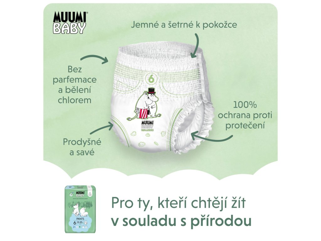 Muumi Baby Pants 6 Junior 12-20 kg (108 ks), měsíční balení kalhotkových eko plen