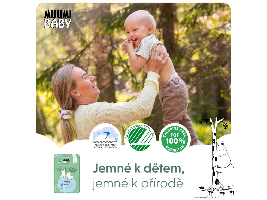Plenky Muumi Baby jsou bezstarostnou a bezpečnou volbou pro vaše dítě, protože všechny suroviny použité k jejich výrobě splňují přísná kritéria stanovená environmentální značkou Nordic Swan Ecolabel a Finskou federací pro alergie, kůži a astma. Jsou bez parfemace a neobsahují chlór nebo glyfosáty, které by mohly dráždit citlivou dětskou pokožku.