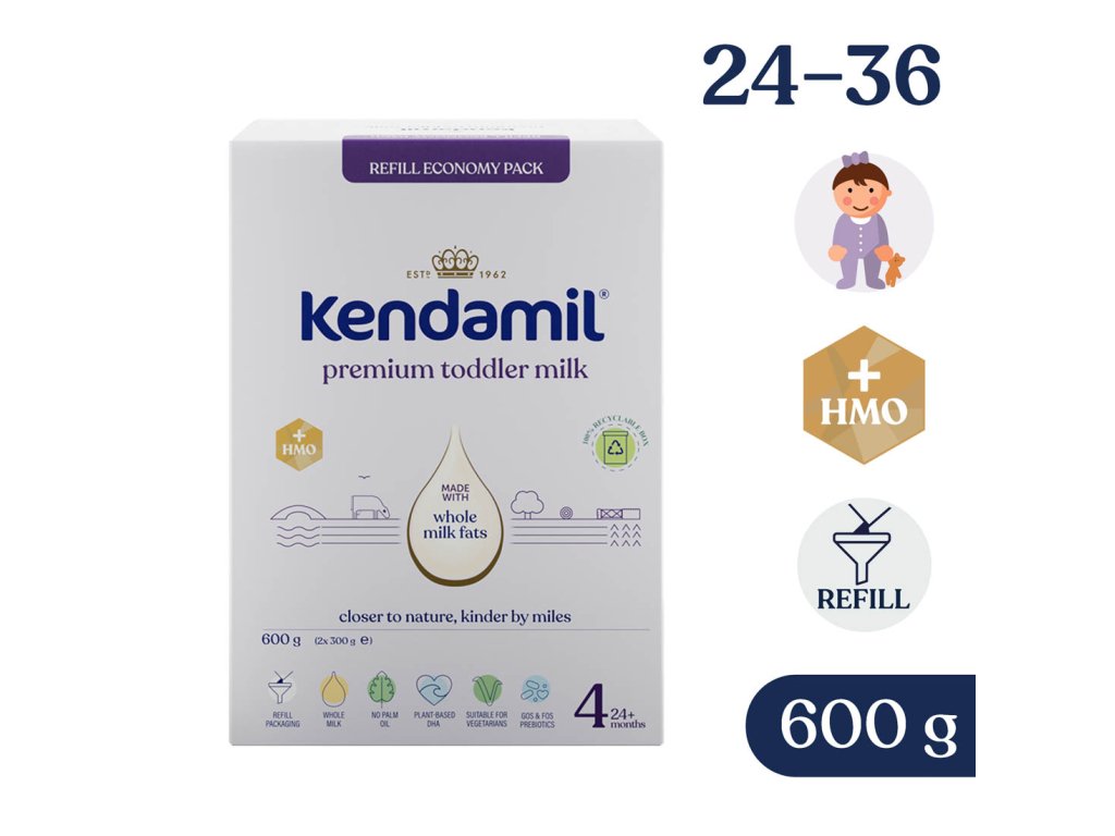 Důležité upozornění: Kojení je nejlepší způsob výživy kojenců. Pokračovací mléko KENDAMIL PREMIUM 2 HMO+ je vhodné pouze pro kojence starší než 6 měsíců a má tvořit pouze část smíšené stravy a nemá být používáno jako náhrada mateřského mléka během prvních 6 měsíců života. Rozhodnutí o zahájení podávání příkrmů, včetně jakékoli výjimky z pravidla věku 6 měsíců, by mělo být přijímáno pouze na radu nezávislých osob kvalifikovaných v lékařství, výživě nebo farmacii nebo jiných odborníků odpovědných za péči o matku a dítě, v závislosti na individuálním růstu a rozvojových potřebách konkrétního kojence. Po konzumaci mléka, zejména před spaním, dbejte na hygienu ústní dutiny kojence. Dodržujte pokyny pro přípravu, krmení a skladování, jinak ohrozíte zdraví kojence.