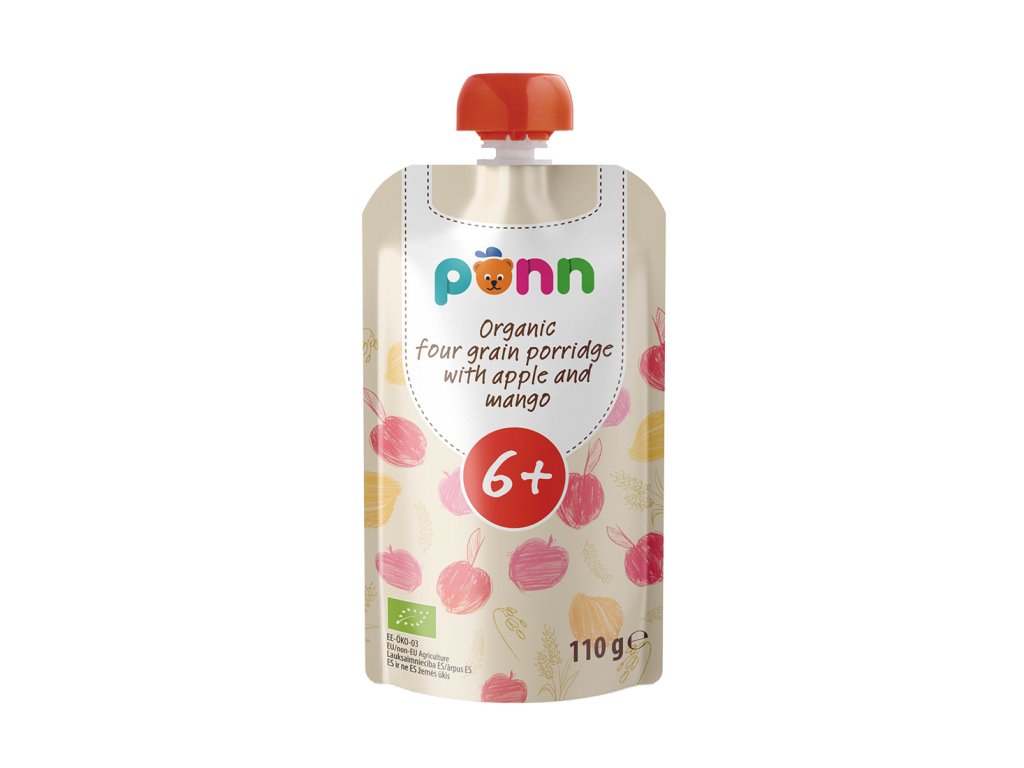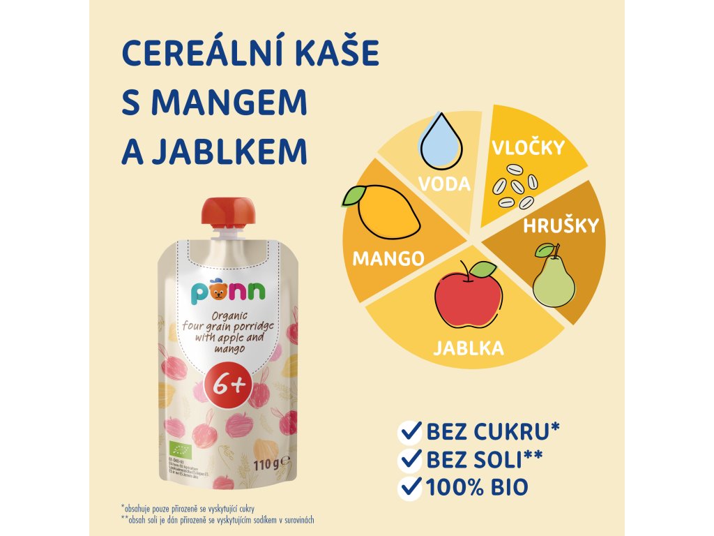 Praktická kapsička obsahuje spojení pečlivě vybraných cereálií a lahodného ovoce. Celozrnné vločky tvoří žito, oves, pšenice a ječmen, které pocházejí z ekologického zemědělství a které v ní zajišťují porci vlákniny pro bezproblémové trávení. Skvělou chuť dotváří pyré z jablíček a manga.