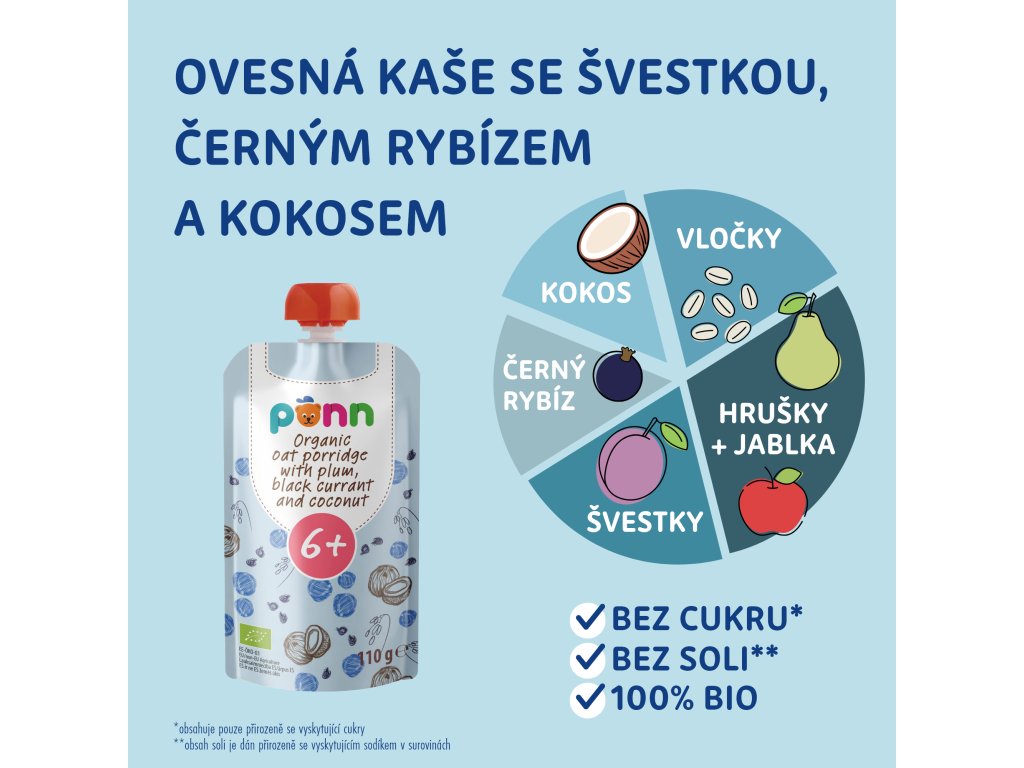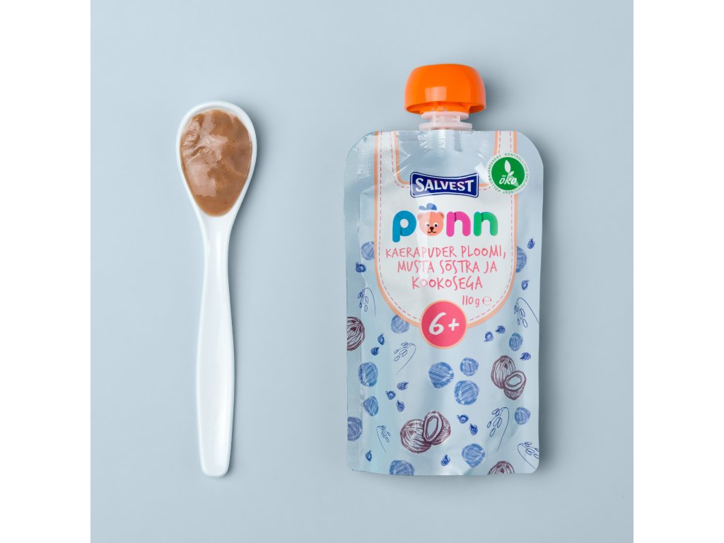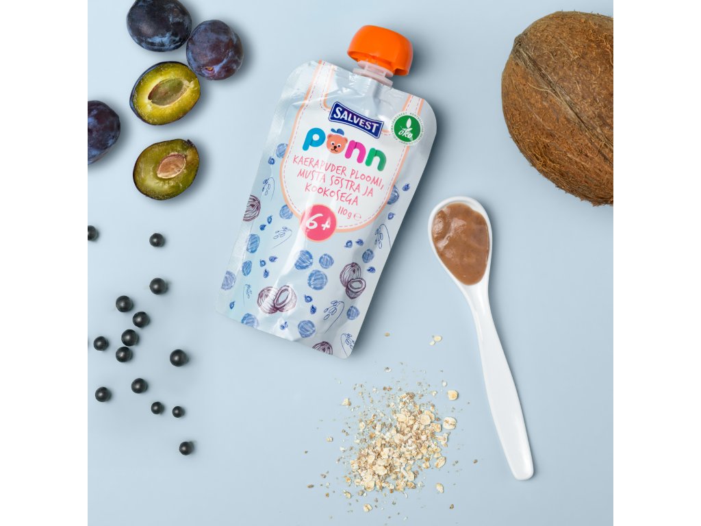 SALVEST Põnn BIO Ovesná kaše se švestkou, černým rybízem a kokosem (110 g)