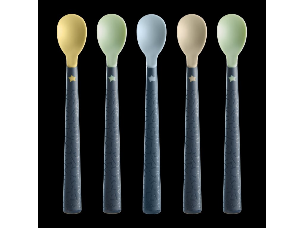 Dlouhé rukojeti lžiček znamenají méně nepořádku při krmení z kelímku nebo skleničky s dětskou výživou