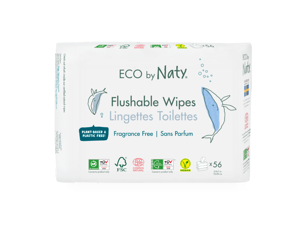 Vlhčené ubrousky ECO by Naty bez vůně - splachovatelné - výhodné balení (3 x 56 ks)