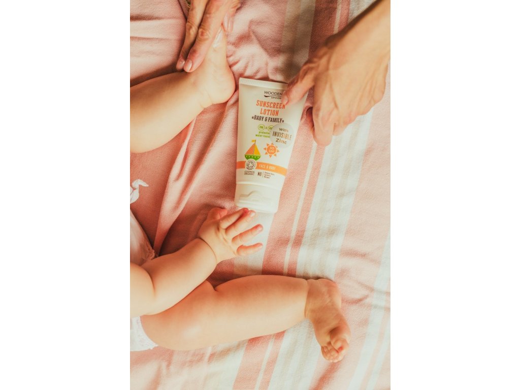 Wooden Spoon Opalovací tělové mléko Baby & Family SPF30, tuba (100 ml)
